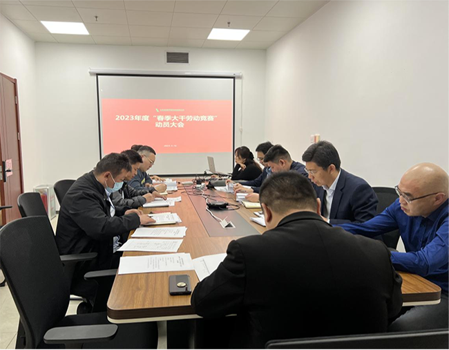總經(jīng)理崔文忠同志宣讀《環(huán)境科技公司關(guān)于開展2023年度“春季大干勞動(dòng)競(jìng)賽”活動(dòng)的通知》,并結(jié)合公司項(xiàng)目進(jìn)展情況及年度生產(chǎn)計(jì)劃,下達(dá)各部室、設(shè)計(jì)院活動(dòng)期間任務(wù)指標(biāo),明確工作舉措,壓實(shí)責(zé)任、傳導(dǎo)壓力,確保上半年時(shí)間任務(wù)“雙過(guò)半”。